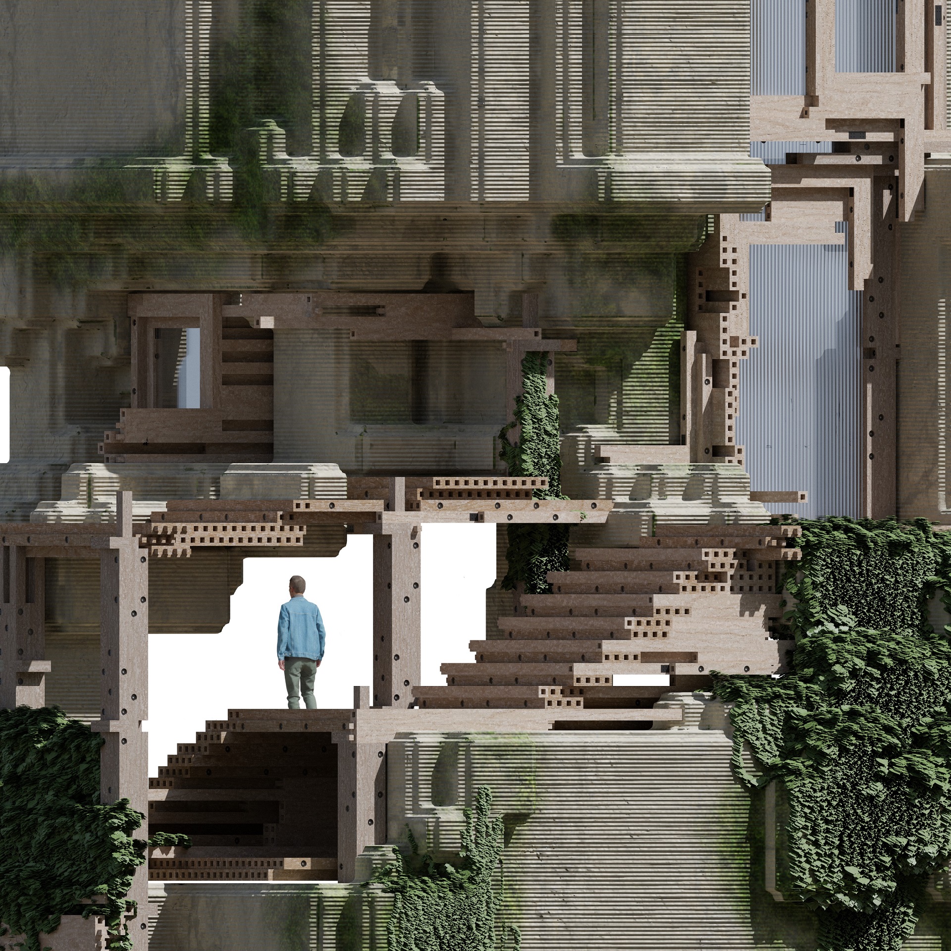 The project aims to situate itself within the existing context, nesting in rather than overriding. It challenges the rigidity of the conventional building practice, by providing adaptable interventions that change over time, allowing circular strategies and a plurality of use. Aging and Decay are integral parts of the struc-ture, treating buildings as instance that can grow and change over time.
