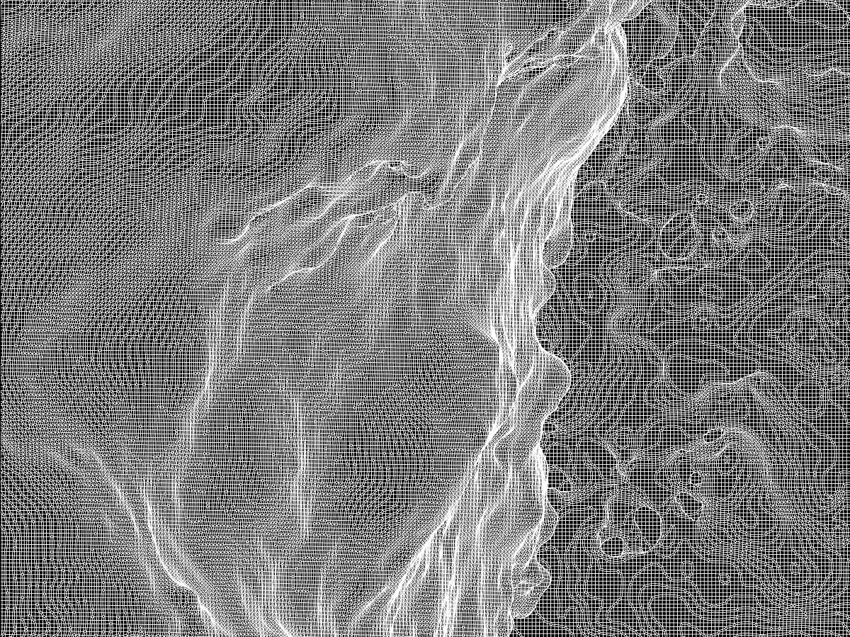 The deeper digital structures are investigated and resampled, the more they reveal their own tectonics, visible only on molecular level. Algorithmic imprecisions cause glitches and aliasing of fully new character.
