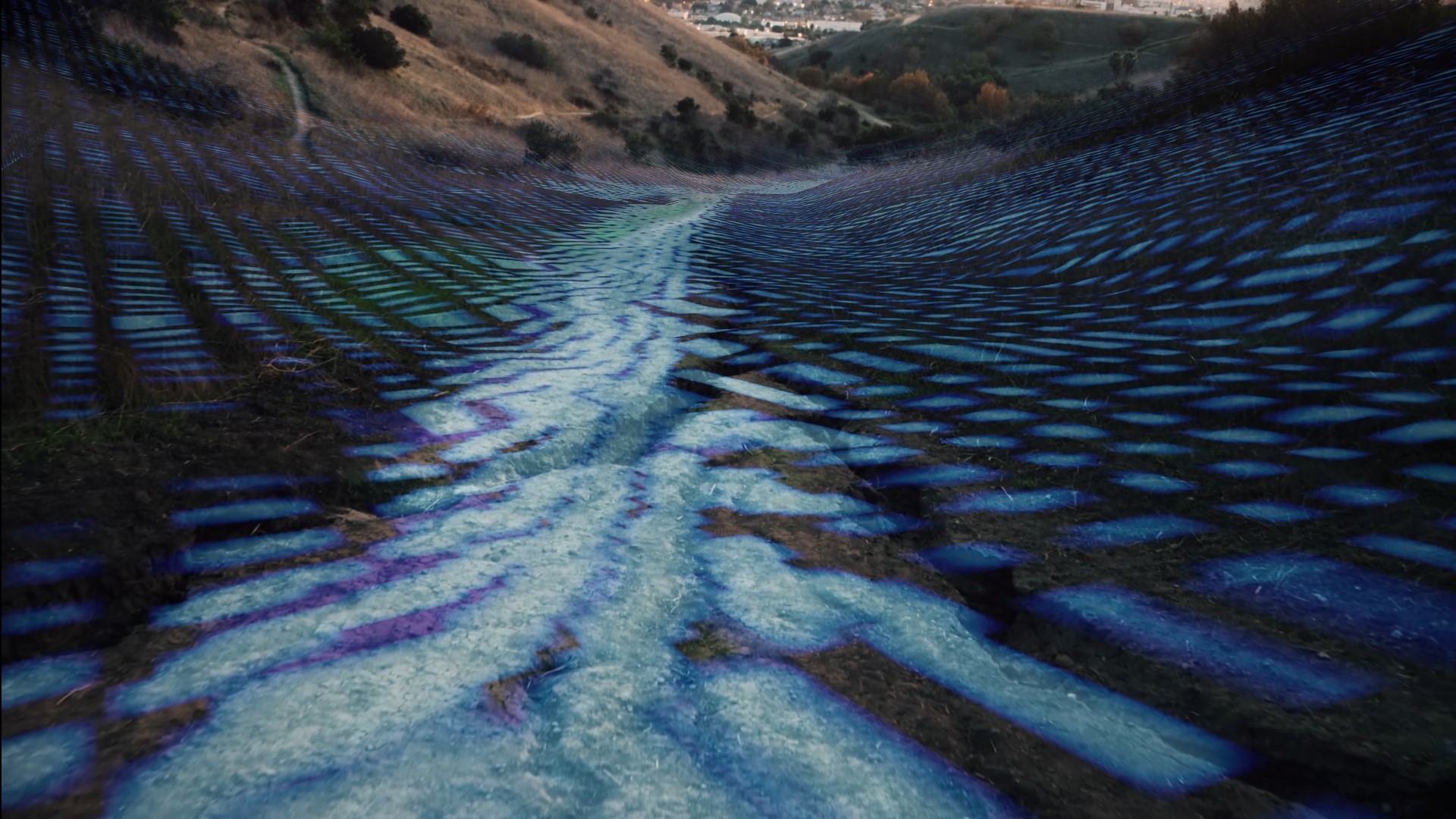 The Ascot Hills resemble a strange synthetic landscape, struck by erosion and drought, fenced off and fortified, and containing underground water structures that were originally meant to improve the fate of the city. Left abandoned, a series of animations made of on-site recordings and digital additions, paired with a projection mapped onto the physical model of the area, speculate on the fictional process of rediscovering the site through terraforming and the arrival of new, cyborganic forms of living.