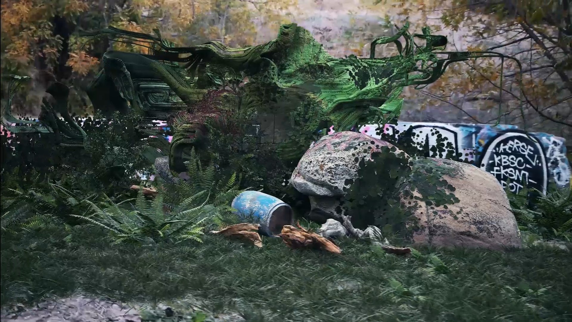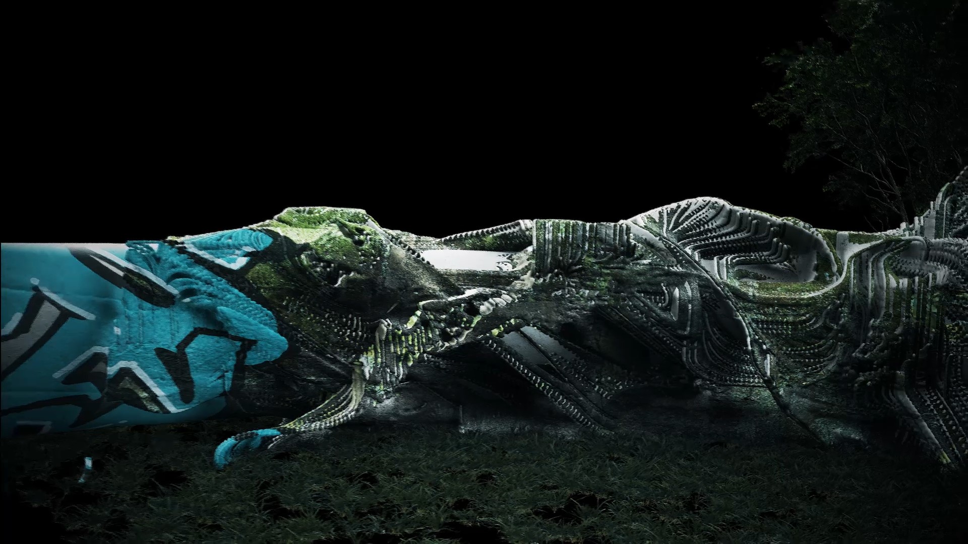 Via motion tracking techniques, real environments of decay and distress are captured and overlayed with modelled speculative futures. Within a Game Engine environment, fictional symbiosises of the natural-technical continuum are postulated, expressed in projections across multiple scales and timelines.
